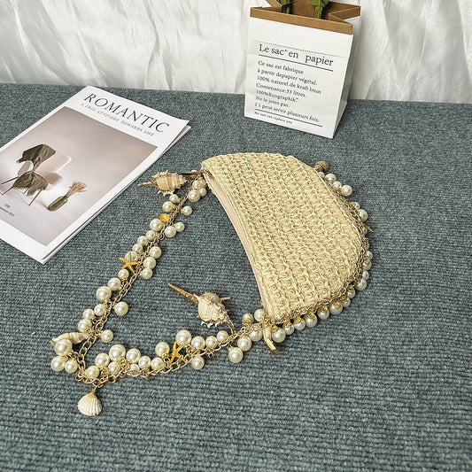 Summer Seaside Holiday Pearl Conch Straw Bag